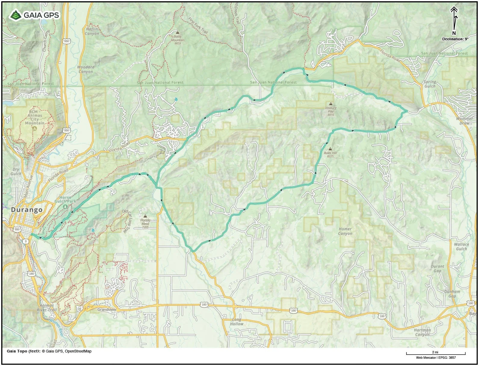 beta provided by Ryan BrinkThe Texas Canyon Loop is a fantastic day ride from Durango into the surrounding area. It starts and ends at the Horse Gulch Trailhead where an old county road takes you up and over a ridge to the Florida River. From here you make your way to another gravel road that takes you out into the county towards Lemon and Vallecito Reservoirs. A climb up Texas Canyon towards Vosberg Peak puts you on Florida Road which can be taken back into town or back to the top of Horse Gulch. This can be extended by going to Bayfield for lunch or going out and back to the reservoirs.